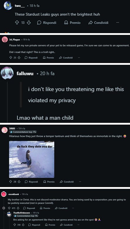 Ieri però i dev di Endfield l’hanno beccato e gli hanno minacciato di portarlo in tribunale se non avesse rimosso tutti i leak e i dati rubati. E cosa fa questo genio? Incita la community a battersi con lui contro una CORPORAZIONE per poter continuare a leakare contenuti illegalmente sotto copyright. Un genio assoluto, soprattutto dopo che la community si è rivoltata contro di lui, visto che li ha coinvolti e ora lo deridono a tal punto che è scoppiato un drama.