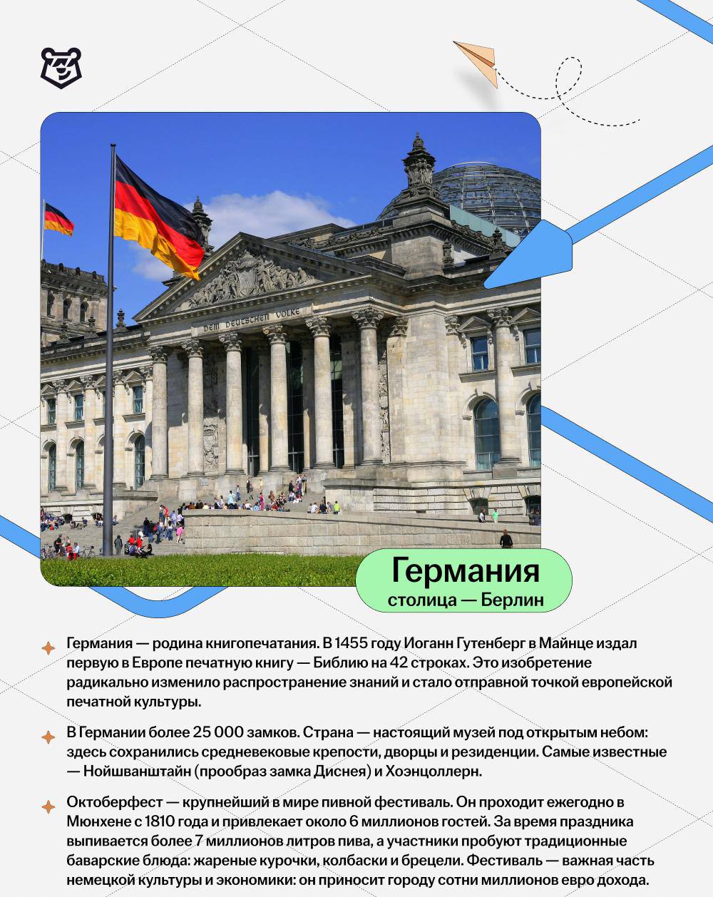 Здесь родилось книгопечатание, стоят тысячи замков, а Берлин каждый день напоминает: прошлое и будущее могут существовать рядом!