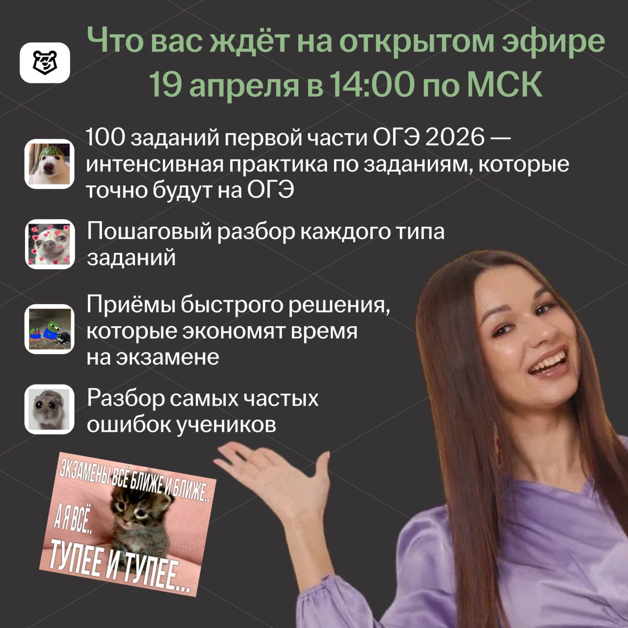 💋 Записаться на курс Бустер — курс 2 в 1, изучить 100% программы ОГЭ за 1,5 месяца, закрыть свои пробелы, а перед экзаменом всё повторить на Предбаннике!