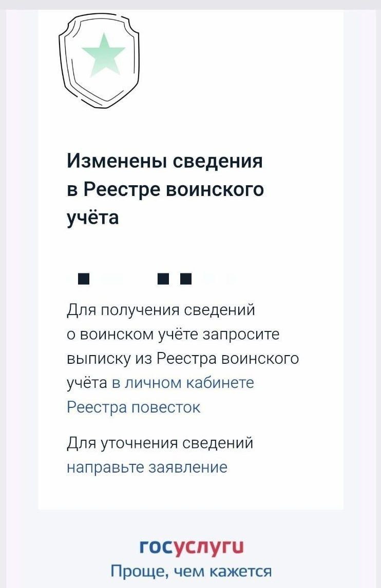⚡️Письма от реестра воинского учёта начали приходить россиянам