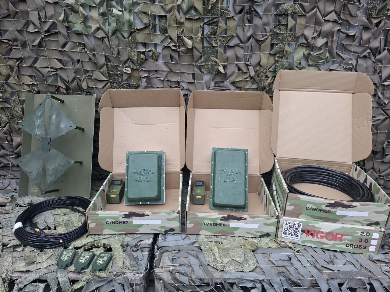 - груз для 2-х ПриZрачных мастерских: заготовки серийных антенн РЭБ, экспериментальные антенны, крепления на агродроны (более 7,5 тысяч комплектов), экспериментальные заготовки на новые изделия;