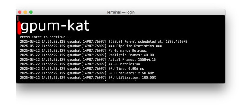 Gpumkat — инструмент для анализа ядра графического процессора в macOS Metal с множеством функций: от анализа производительности до энергопотребления, частоты попаданий в кэш, метрик интерфейса, состояний программного обеспечения графического процессора, рекомендаций по оптимизации шейдеров, трассировки стека, записи временных шкал и трассировок и многого другого.