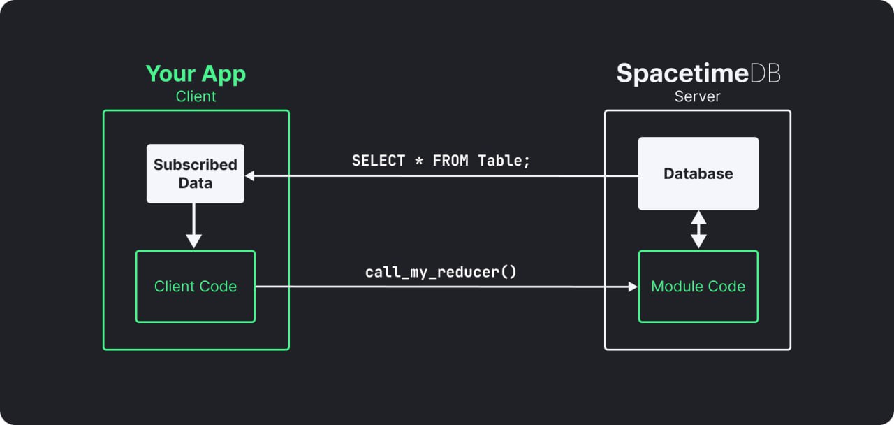 SpacetimeDB можно рассматривать как базу данных и сервер, объединённые в одном устройстве.