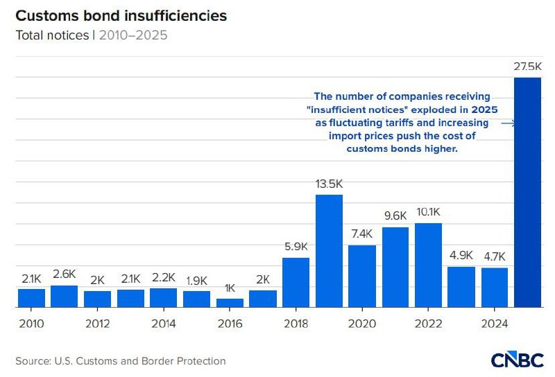 » 트럼프 정부의 관세 정책으로 인해 미국 수입업계가 역대 최대 규모인 약 36억 달러의 통관 보증금(Customs Bond) 부족 사태에 직면