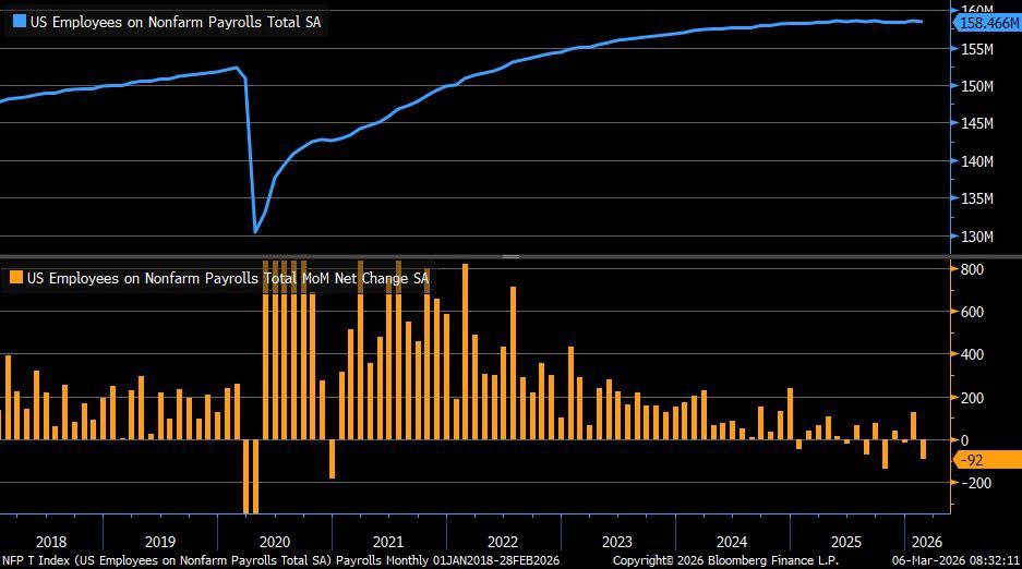 » 비농업 고용자수: -9.2만명. 예상 큰 폭 하회