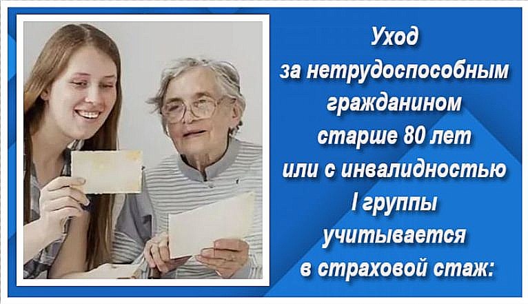 Уход может быть засчитан в страховой стаж, если ухаживающему более 14 лет.