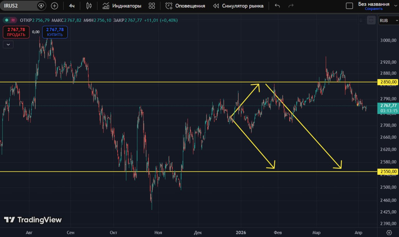Свою позиции в шорт от 2837 держу дальше. Сейчас около +3.8%. Сделку уже обезопасил, стоп в безубытке (2830). Дальше просто сопровождаю. Часть можно закрывать по ходу, чтобы не перегружать депозит и не ловить лишние эмоции. Сейчас рынок больше про терпение, чем про активные действия.