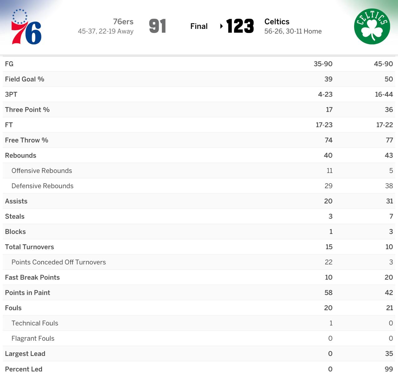 Фила даёт соперникам бросать с периметра. Они 20-е в лиге по частоте трехочковых от соперников. Только 10 команд позволяют выбрасывать больше трешек. Это может прокатить против плохо бросающих команд, но когда вы выходите против Тэйтума, Брауна, Притчарда, Хаузера, Шайермана, то это так себе стратегия. А вдруг у них полетит?