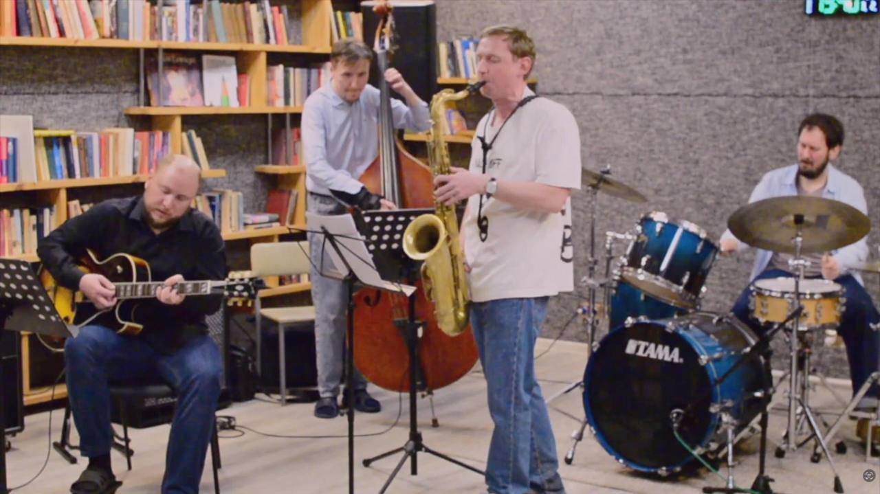 🥁 Александр Астафьев пишет музыку для джазового коллектива. Он уже играет авторскую музыку своих коллег по бэнду, и, судя по выражению лица 😅- параллельно прокручивает в голове идеи для собственной композиции😄 Премьера планируется совсем скоро!