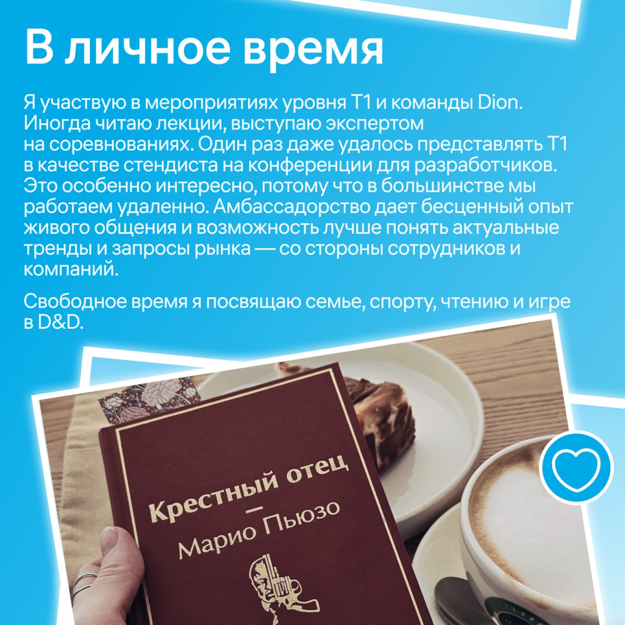 💡 Александр Широчкин, руководитель направления разработки в команде Т1, рассказал, как строит свой день и находит в нем время для самого важного — работы, семьи, увлечений и саморазвития. Листайте карточки 💙