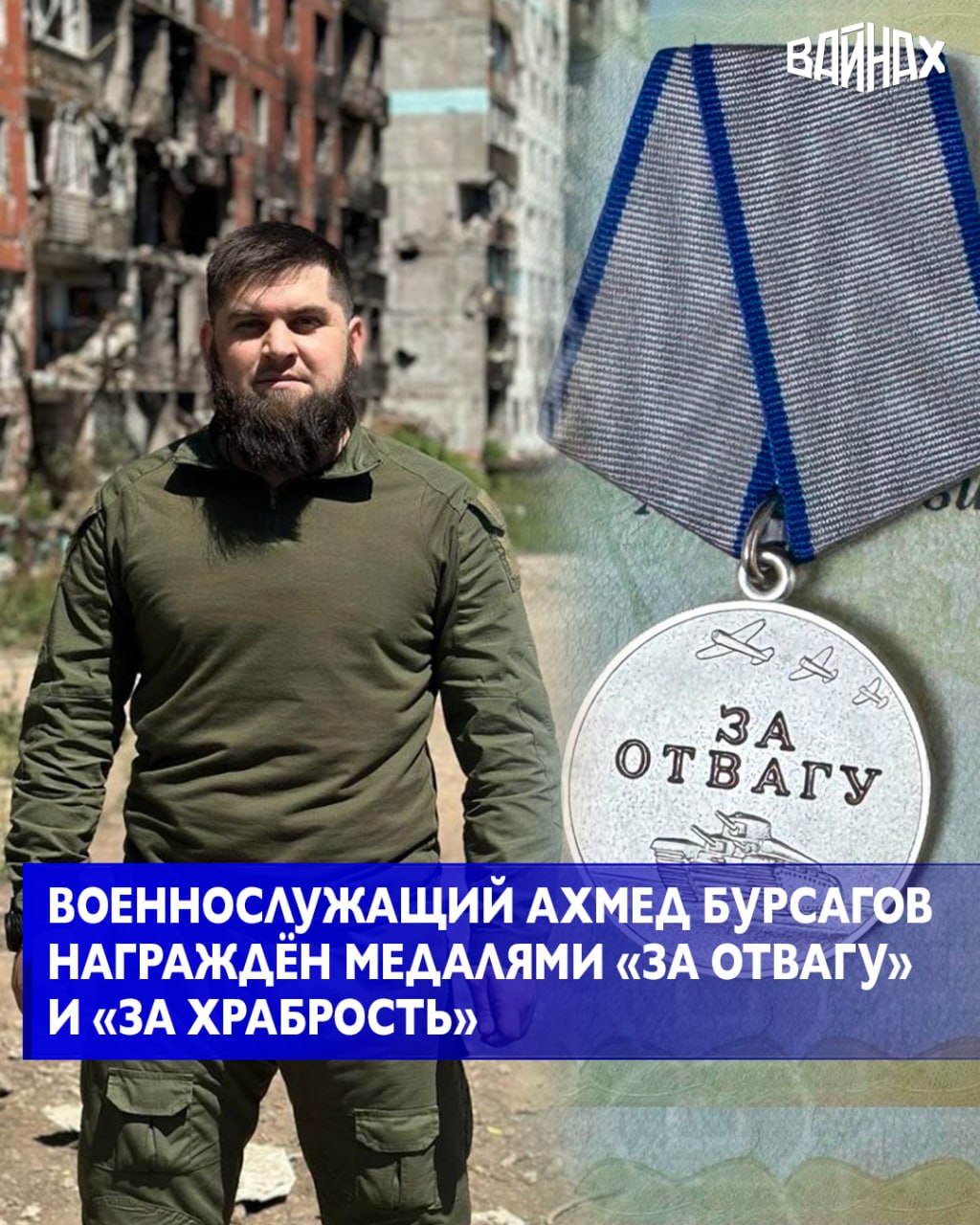 Военнослужащий 78-го мотострелкового полка «Север-АХМАТ» МО РФ, младший сержант Ахмед Бурсагов, Указом Президента Российской Федерации награждён медалью «За отвагу», а также медалью «За храбрость» II степени. Об этом сообщили в пресс-службе подразделения.