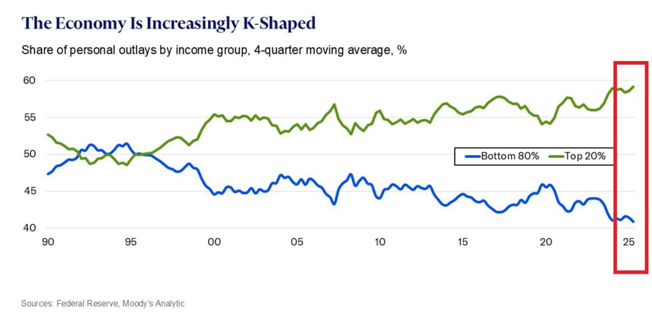 🇺🇸 La economía estadounidense se está volviendo cada vez más concentrada en forma de K: