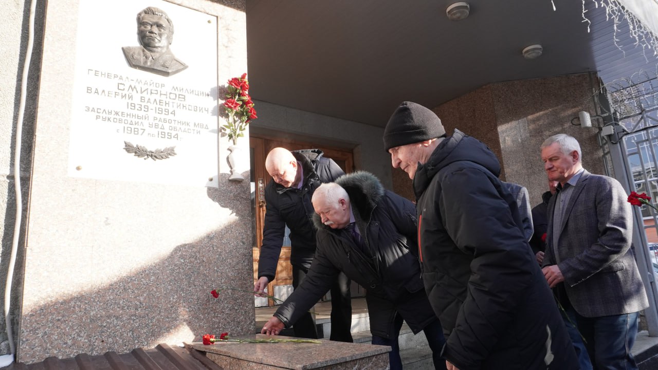 🔵 Важной частью церемонии стало чествование памяти легендарной личности в истории ведомства — генерала Валерия Валентиновича Смирнова. Участники встречи возложили цветы к его мемориальной доске. Валерий Смирнов возглавлял Управление внутренних дел Челябинского облисполкома (ныне — ГУ МВД) в течение 7 лет. Именно он заложил фундамент современной структуры областного ведомства, уделяя огромное внимание техническому оснащению и созданию системы ветеранских организаций.