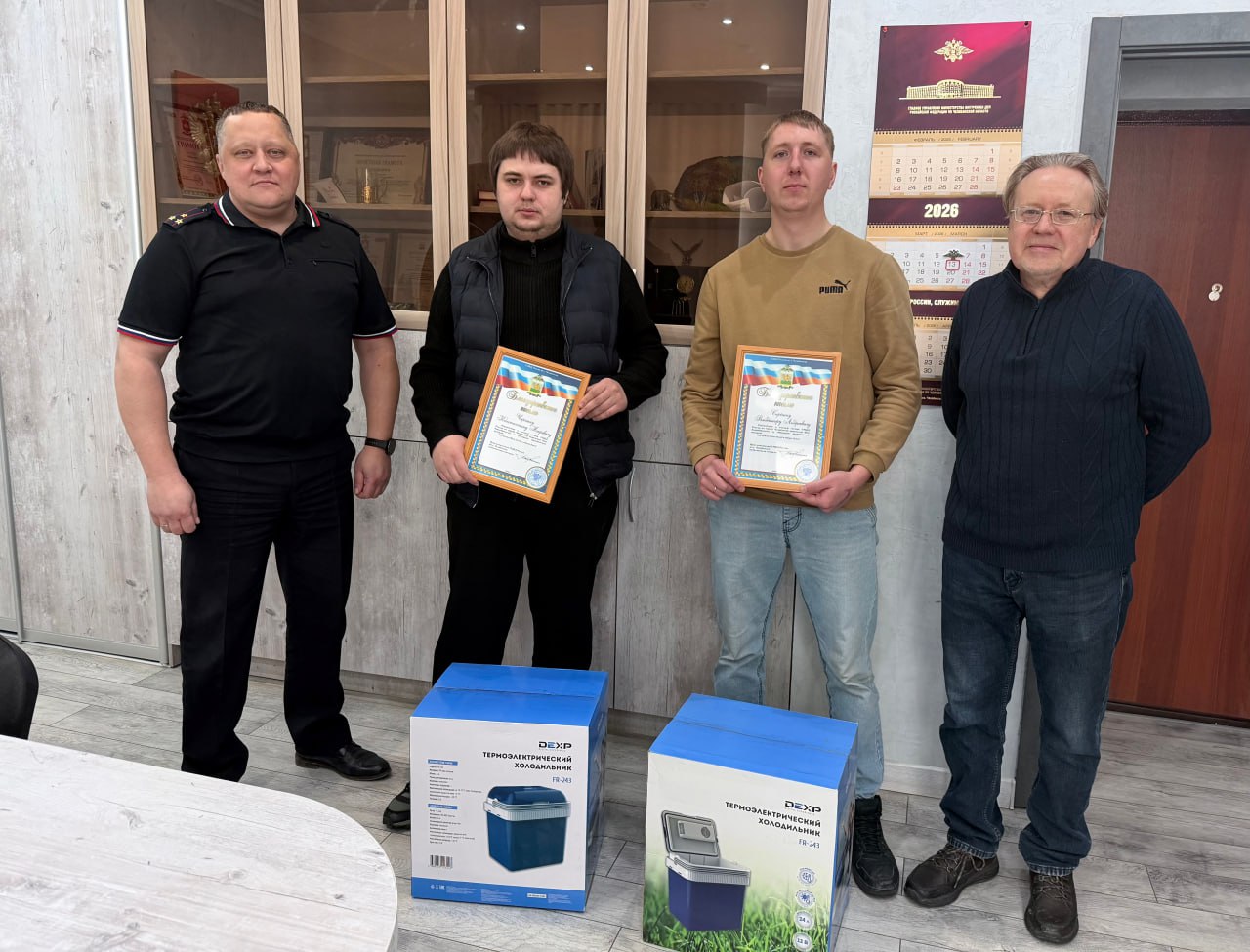 ➡️Заместитель начальника УМВД России по г. Челябинску Михаил Власов и представитель Общественного совета при УМВД Михаил Стерехов поблагодарили мужчин за проявленную активную гражданскую позицию, сознательность и помощь в борьбе с мошенниками, отметив, что именно такие действия становятся примером того, как обычный человек, проявив внимательность и решимость, может помочь сохранить сбережения обманутых граждан.