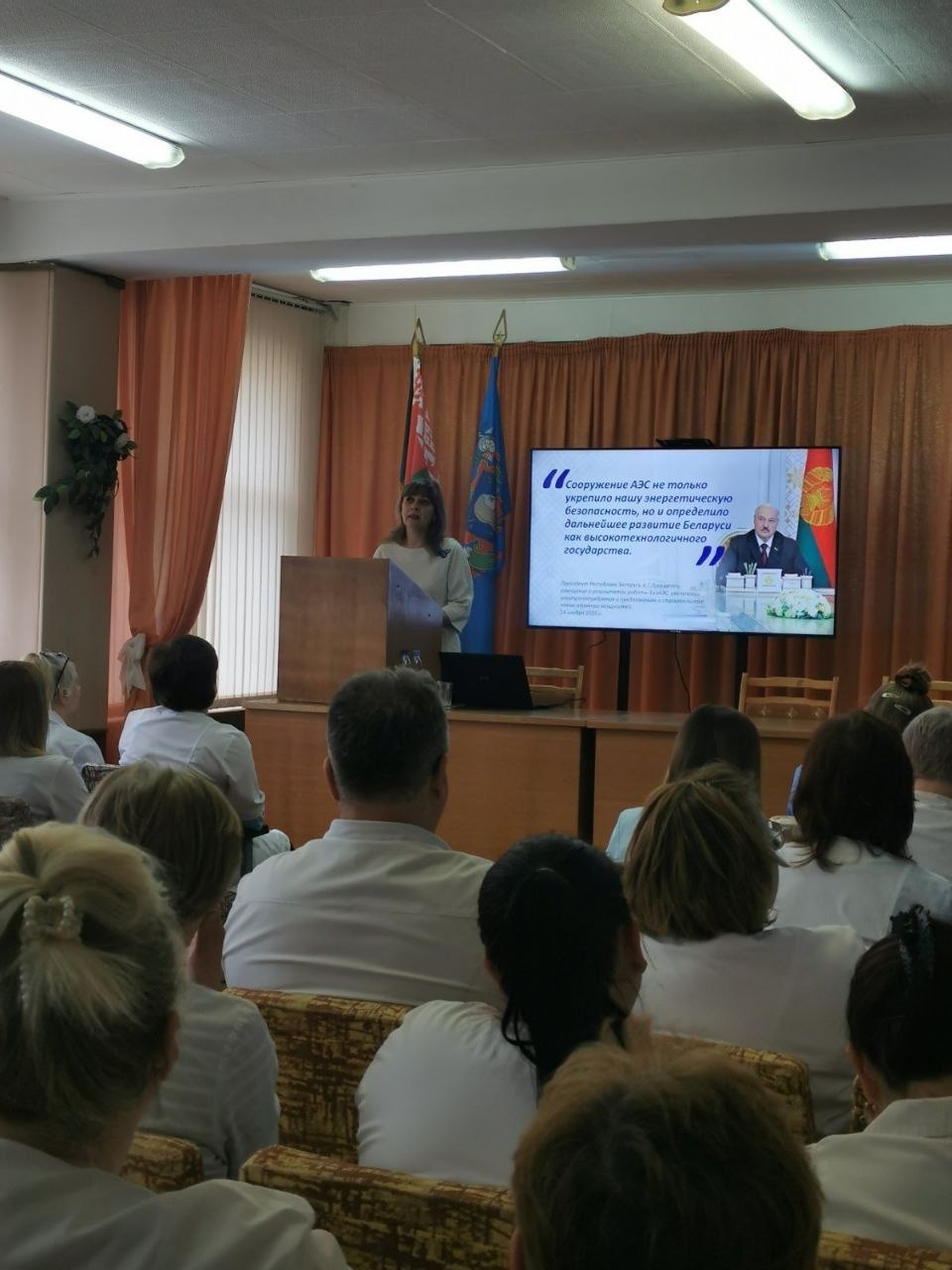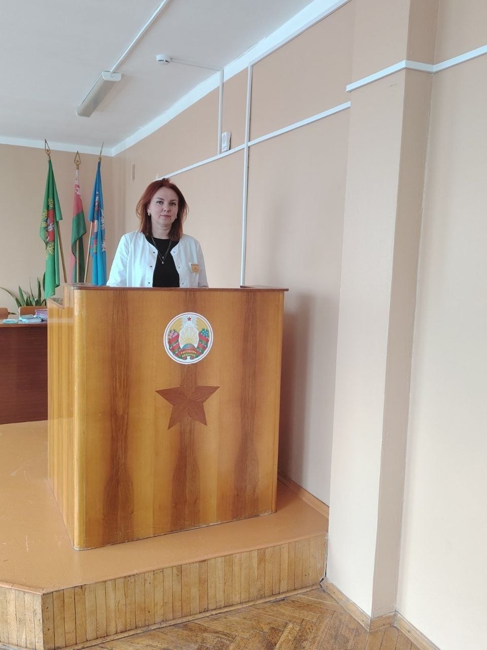 О социальной защите населения как ключевом приорите государственной полики Беларуси доложила заместитель главного врача по идеологической работе Наталья Геннадьевна Болтрушевич.
