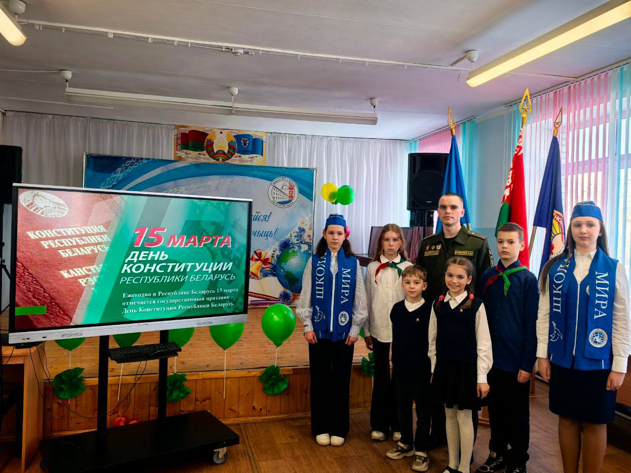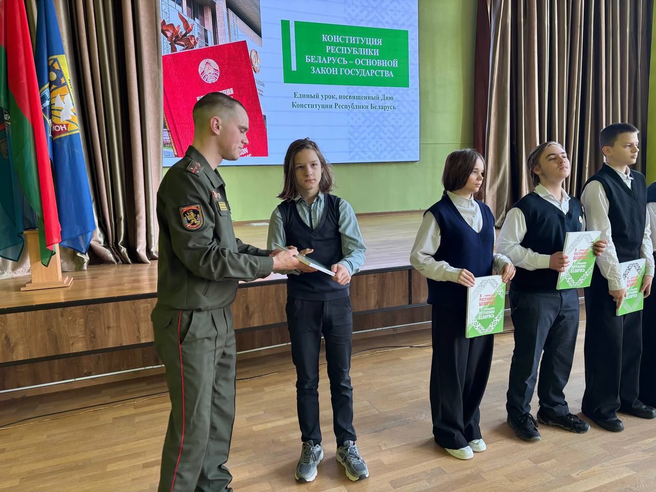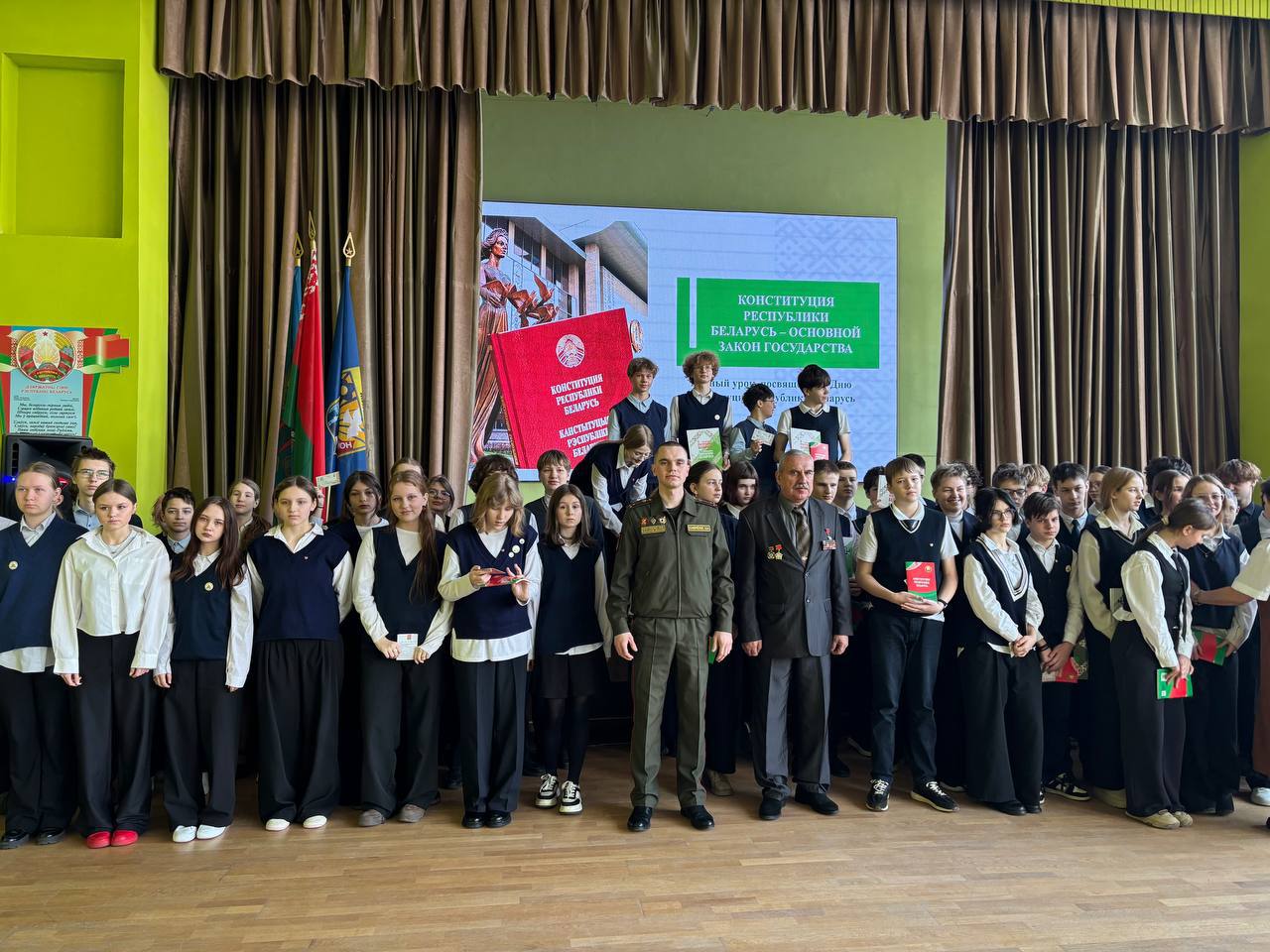 Военнослужащие ⚔️соединения⚔️ приняли участие в открытых уроках ко Дню Конституции Республики Беларусь🇧🇾 с учащимися средних школ Первомайского района Минска