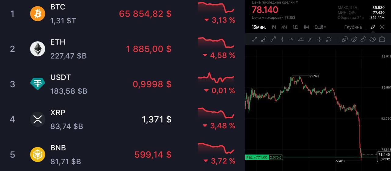 Биток снова приближается к $67k, лонгов ликвиднуло на $300m, а индекс страха и жадности опять 12.