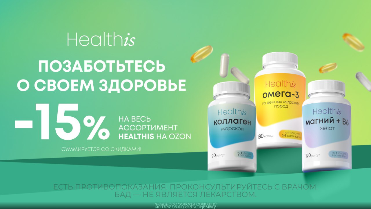 Промокод Healthis - скидка 15% на весь ассортимент бренда Healthis на OZON! Суммируется со скидками!