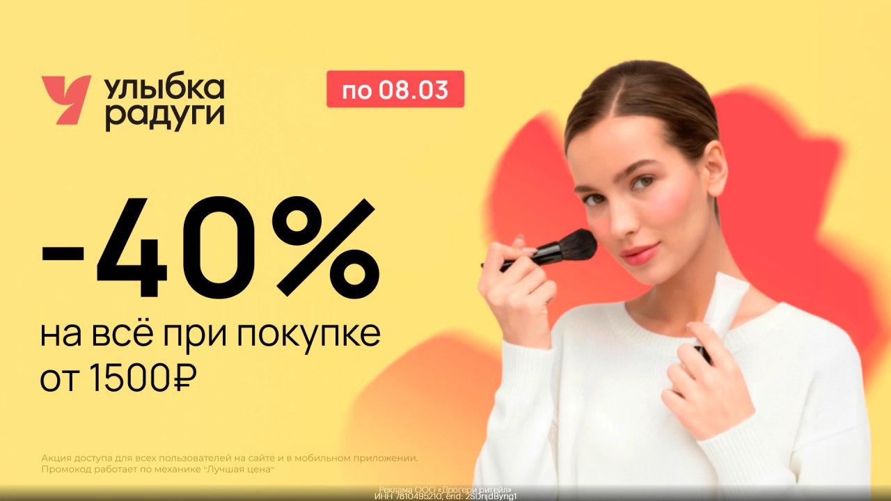 ➡ Получи скидку 40% за покупку от 1500 рублей на всё! ТОЛЬКО по 08.03