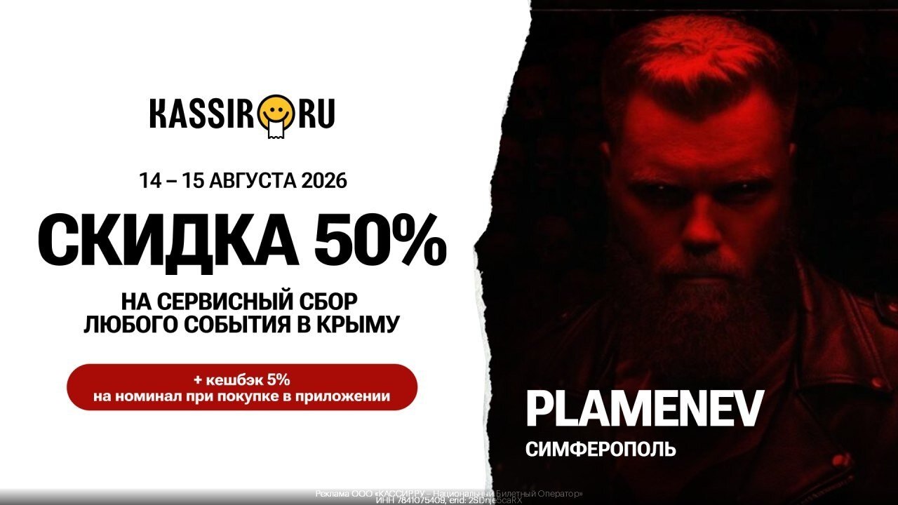 Промокод KASSIR.RU – Скидка 50% на сервисный сбор любого события в Крыму по промокоду + кешбэк 5% для всех при покупке в приложении!