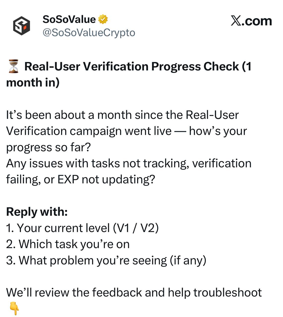 SoSoValue's Real-User Verification campaign has been live for about a month to ensure fair rewards in Season 2 EXP Airdrop.