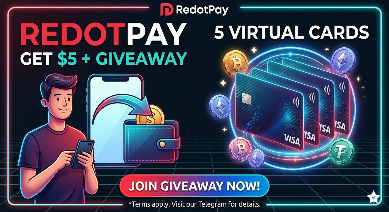REDOTPAY: $5 BONUS + CARD GIVEAWAY REMINDER