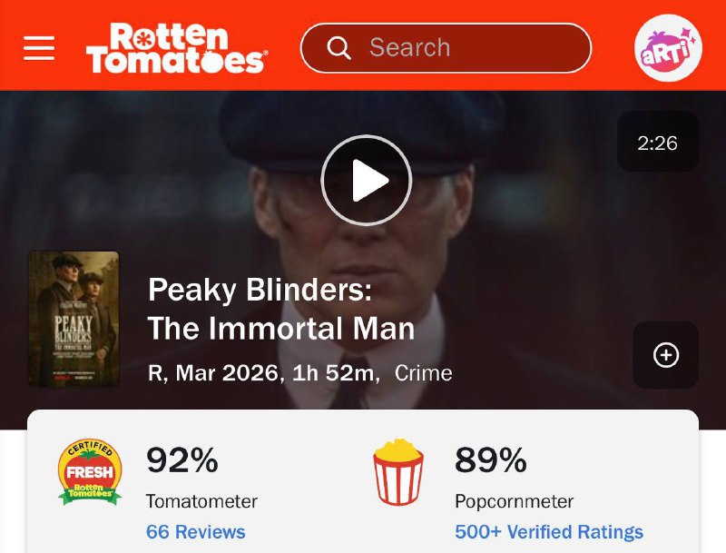 Сегодня выходит фильм по «Острым козырькам» — Томас Шелби возвращается на экраны, а критики Rotten Tomatoes уже выдали ему внушительные 92% свежести.