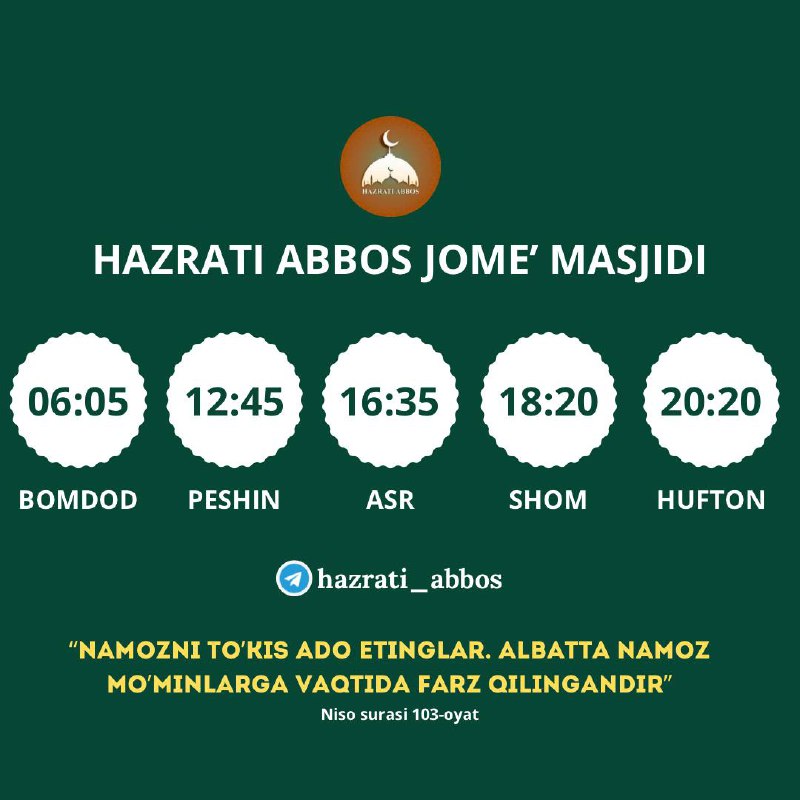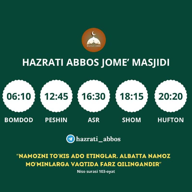 Телеграм канал «Ҳазрати Aббос | Расмий канал»