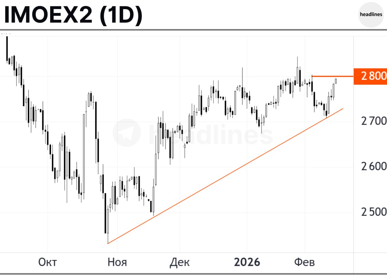 ⚪️После прохождения 2800 п. откроется пространство для маневра индекса к следующему сопротивлению — 2850 п., которое может быть отработано до конца февраля.