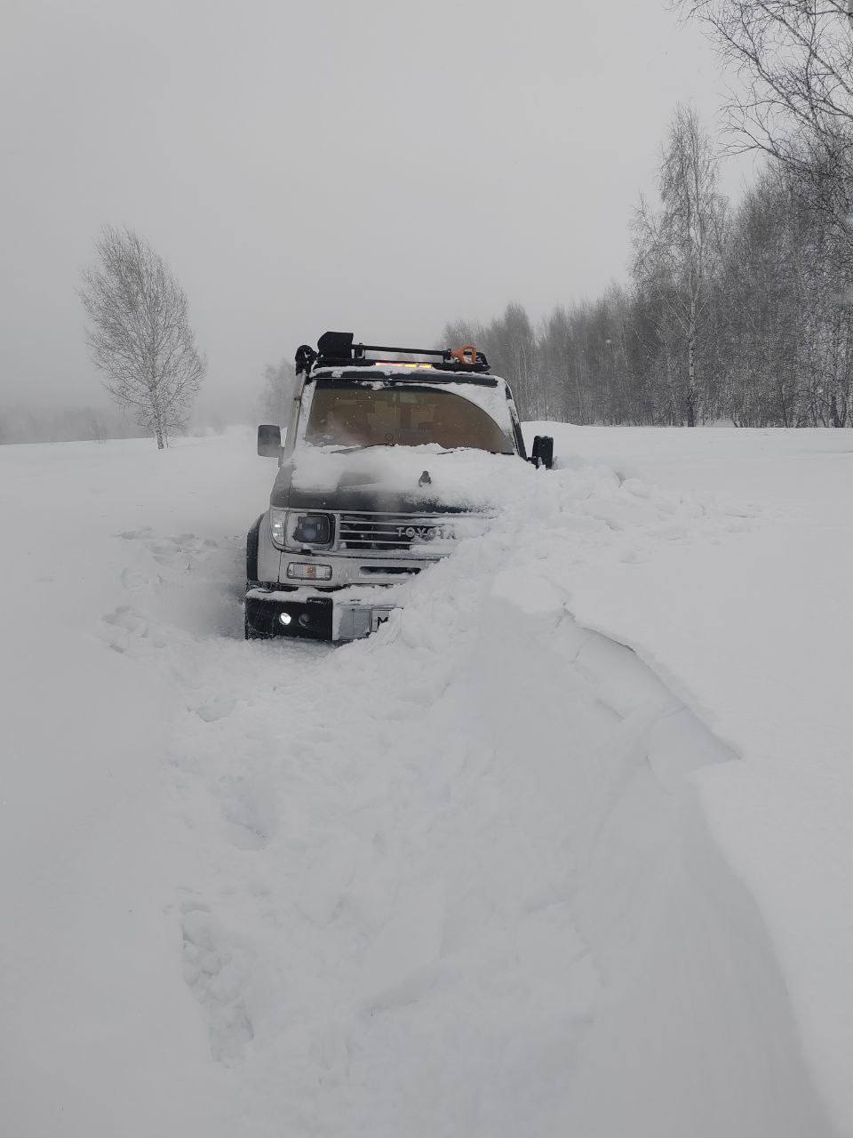 Мы ждали, пока снег закончится, и ветра станут чуть тише, ребята вчера героически бились на подготовленных машинах, но преодолеть смогли только половину.