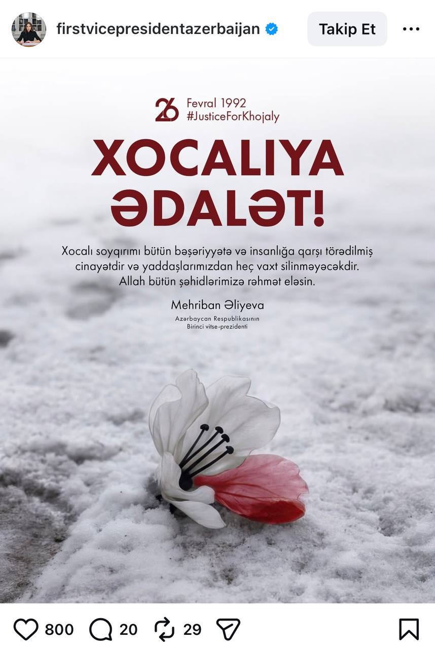 Fevralın 26-sı Xocalı soyqırımının 34-cü ildönümü ilə əlaqədar müdafiə naziri general-polkovnik Zakir Həsənov və nazirliyin digər rəhbər heyəti "Ana harayı" abidəsini ziyarət edib.