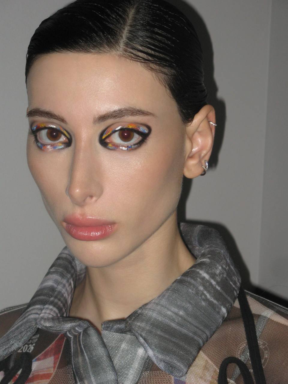 «Для ужина Cosmoscow я выбрала для Насти образ элегантный, но не лишенный интересных деталей — мне так нравятся эти перчатки «Окрашено» (всё-таки Настя отправилась на арт-мероприятие) и укороченные брюки из новой коллекции Walk Of Shame — всегда красиво подчеркивают щиколотки. Туфли Chanel от Блази без особых комментариев, а вот мейк Насте делала Мару Ловэ — визажист, известная по своей работе с графикой (и с Ларисой Гузеевой 🤭) — по цветам хотелось повторить тот самый отпечаток краски на перчатках-объекте искусства от Андрея Артемова!