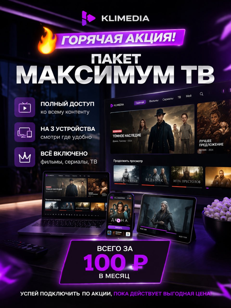 📈 Смотри кино и ТВ в лучшем качестве без ограничений!