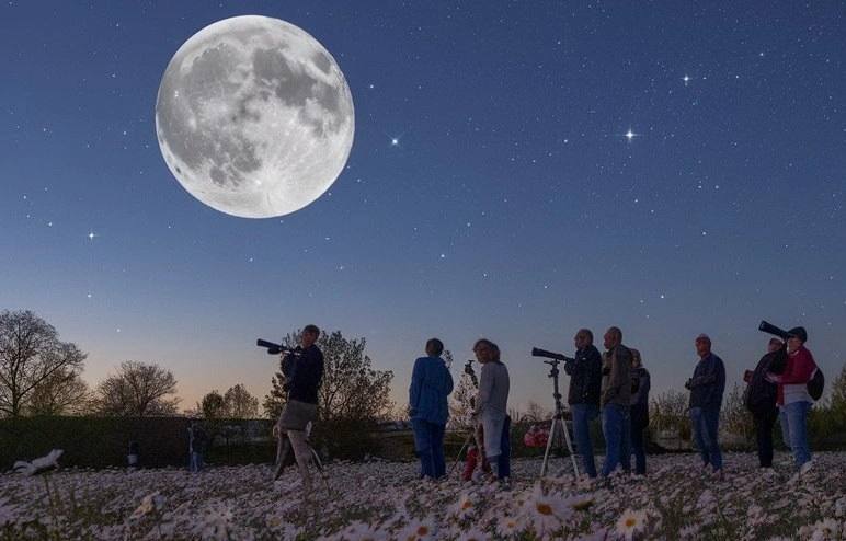 1 мая — первое микролуние! Полная Луна в апогее, её диаметр уменьшится на 13–14%, яркость упадёт на четверть. Расстояние до Земли — на 50 тысяч км больше обычного.