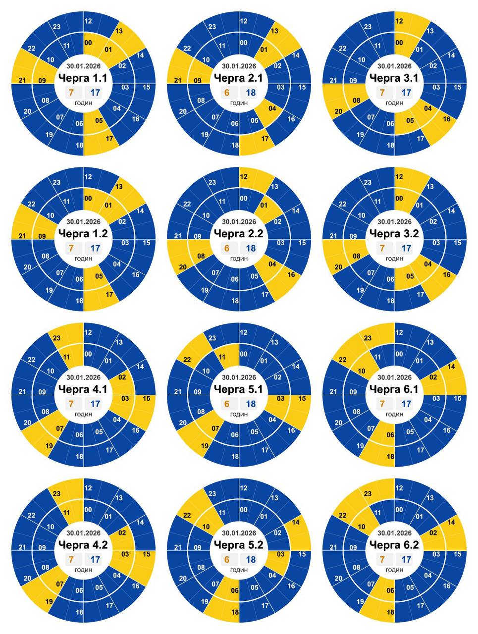 ⚠ 30.01.2026 - Графік погодинних відключень