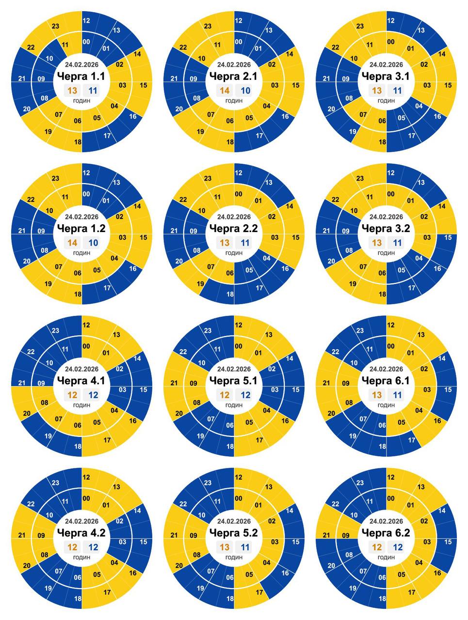 Черга 1.2: 00-02, 08-10, 12-14, 16-18, 20-22