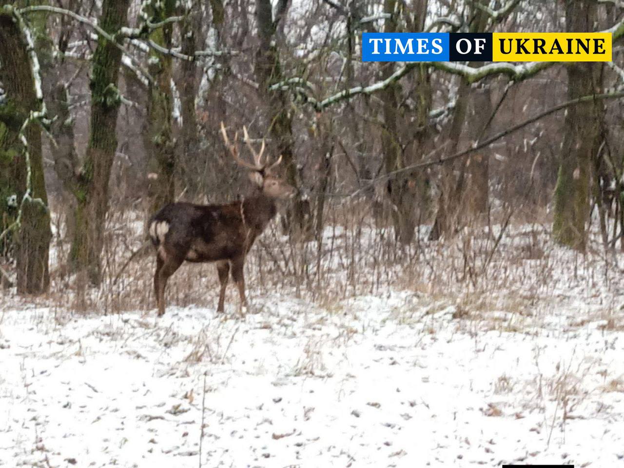 ⭕️ Японський олень, який родом зі Східної Азії, зараз почувається комфортно в засніжених лісах України.