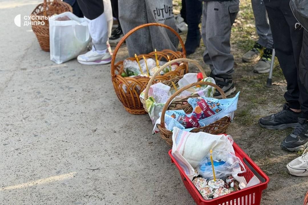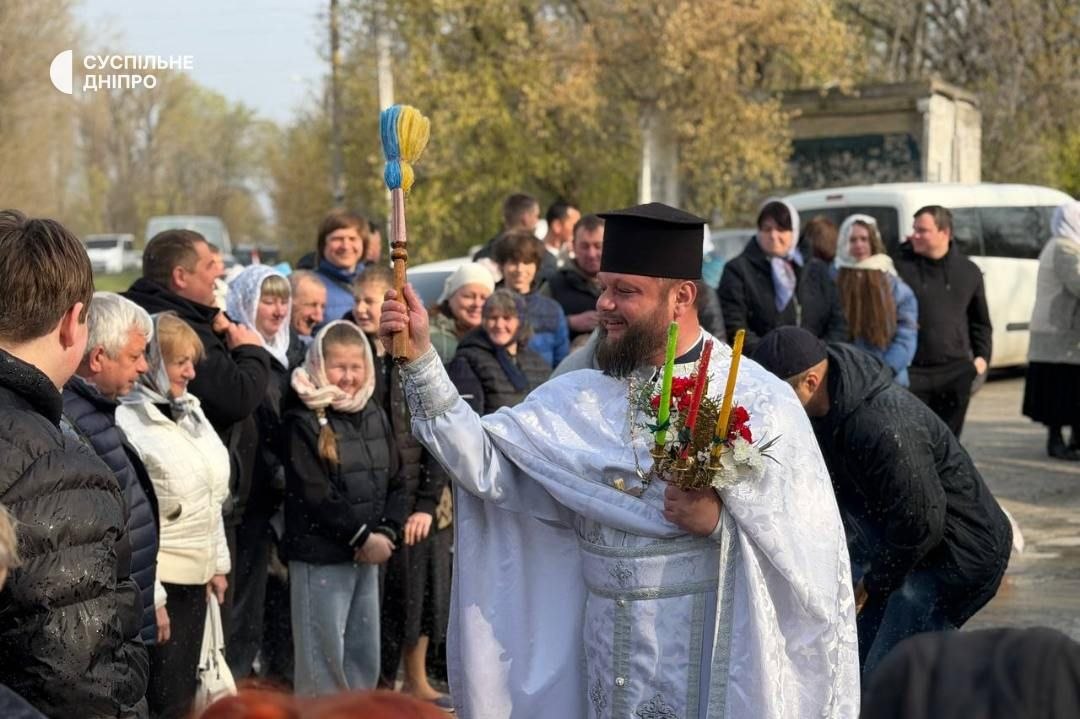 Священник благословляв великодні кошики просто біля будинків жителів, проїжджаючи вулицями селища. Мешканці розповідають, що ця традиція зародилася під час пандемії COVID-19, коли заборонялися масові зібрання.