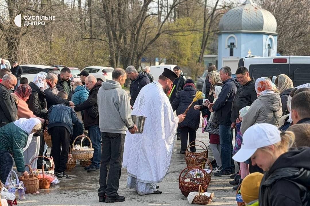 В церкві на честь ікони Божої Матері «Несподівана радість» та Храмі Святого Архістратига Божого Михаїла освячують паски та великодні кошики. На службу прийшли десятки людей.