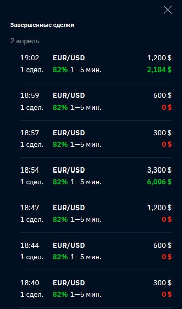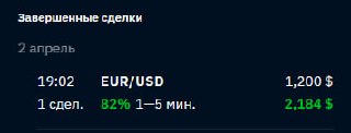 валютная пара, направление, время и сумма входа.