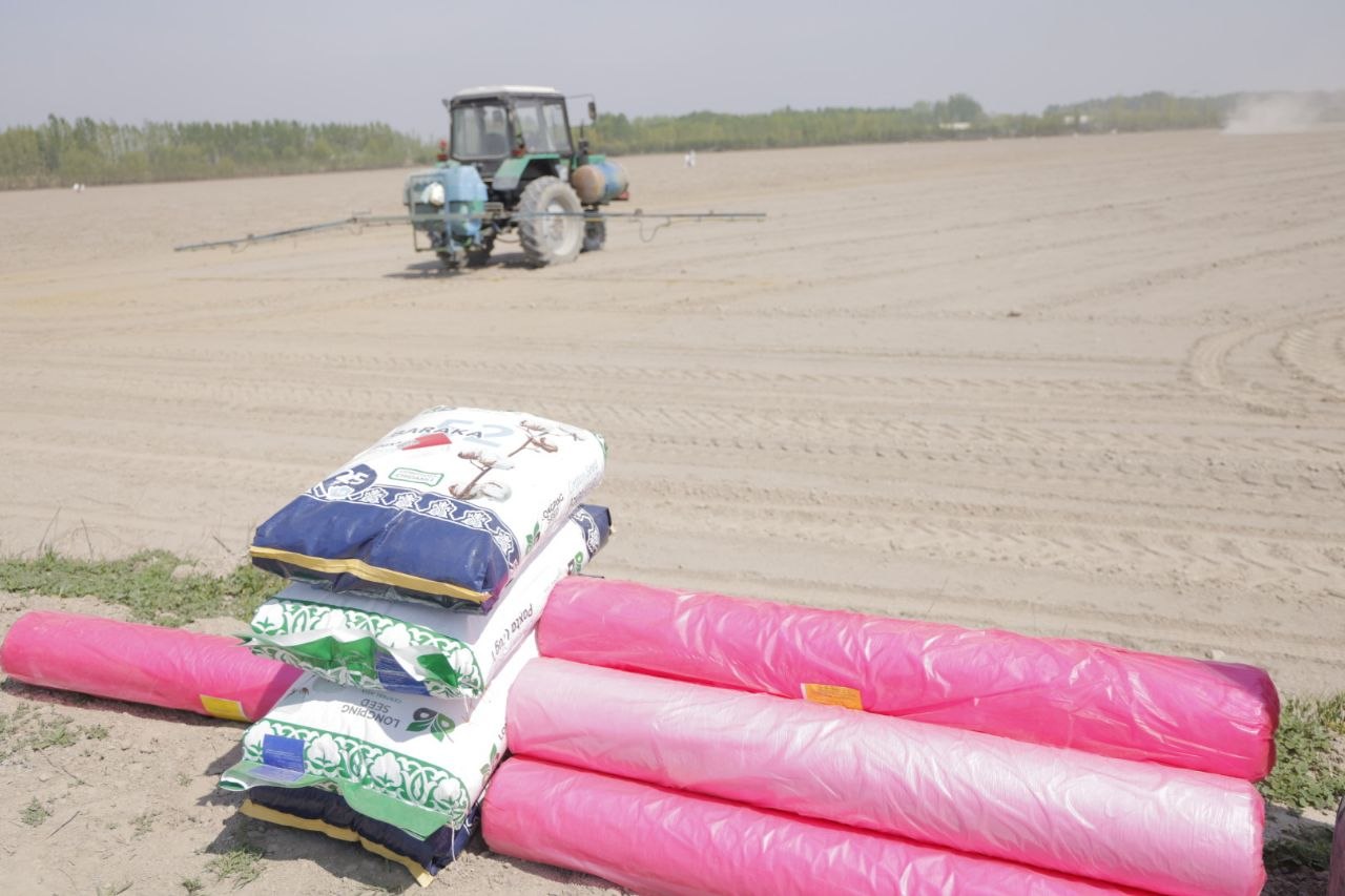 Ko‘zdan kechirgan 3 gektarlik konturda ekin joylashtirish ishlari aniq reja asosida tashkil etilgan bo‘lib, uning 1,5 gektar qismiga qizil plyonka, qolgan maydoniga esa oq plyonka ostida urug‘lik chigit ekish rejalashtirilgan.
