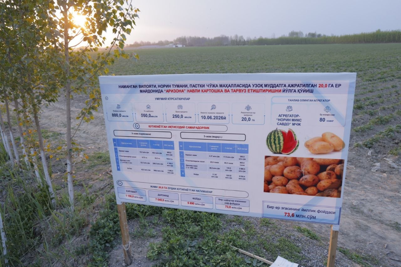 Dala sharoitida olib borilayotgan ishlarni ijobiy baholab, klaster rahbariyati va mutaxassislarga zamonaviy agrotexnologiyalarni keng joriy etish, tomchilatib sug‘orish tizimidan samarali foydalanish, sifatli urug‘likni tanlash hamda agrotexnik tadbirlarni belgilangan muddatlarda amalga oshirish yuzasidan tegishli tavsiyalar berdim.