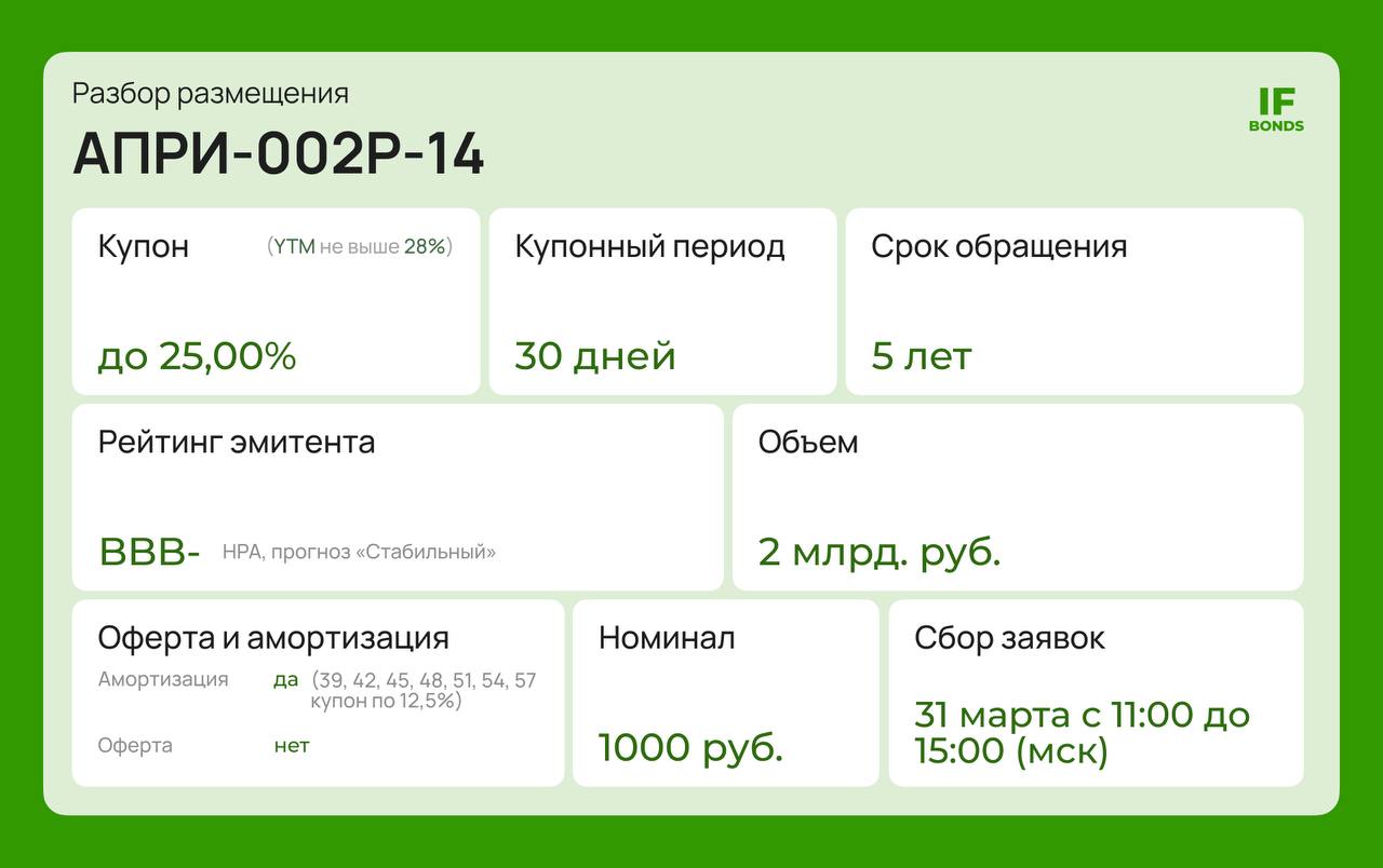 Отсюда и купон до 25%. АПРИ — это классический сегмент ВДО: может дать повышенную доходность, но требует аккуратного подхода и диверсификации.