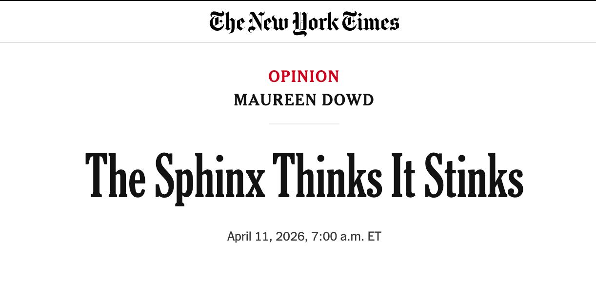[Статья влиятельной колумнистки Морин Дауд, опубликованная в сегодняшней The New York Times, проливает свет на причины, почему Мелания Трамп 10 апреля 2026 г внезапно для всех выступила с речью по поводу Джеффри Эпштейна и его сети]