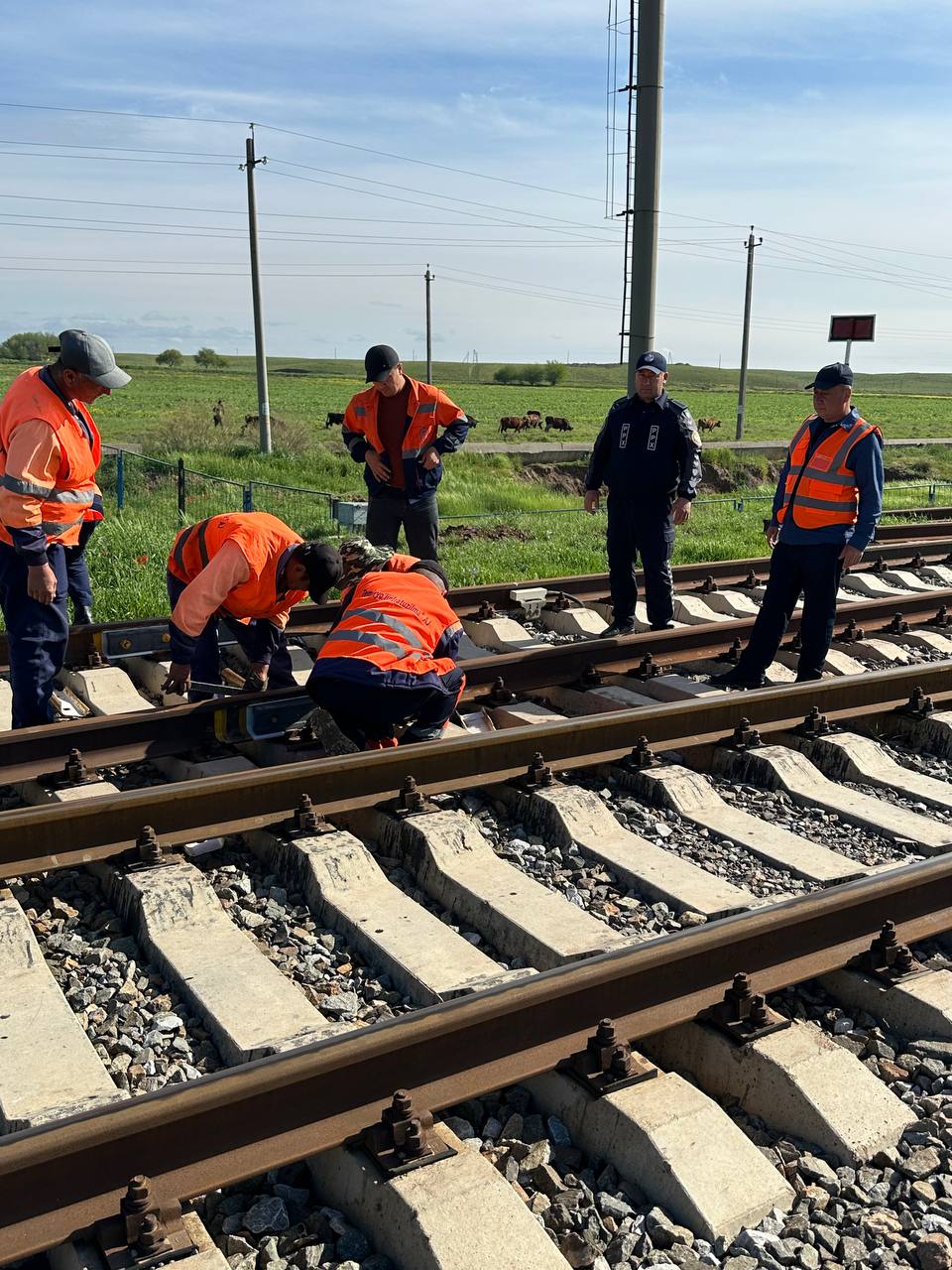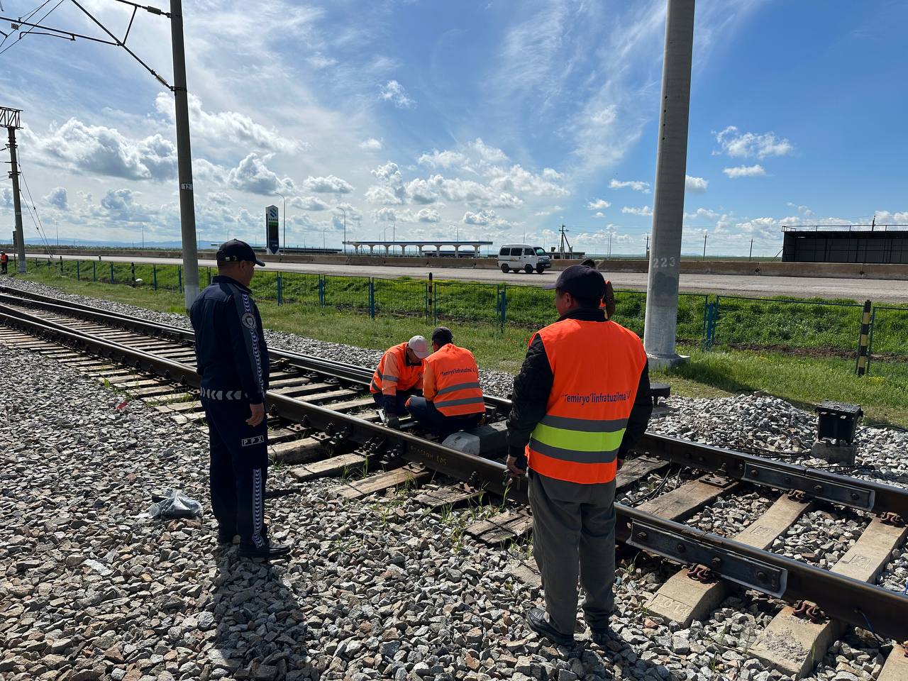 Қашқадарё вилояти ТХТБ Жамоат хавфсизлиги бўлими саф бўлинмалари ППХБ ходимлари томонидан "Қарши-Китоб" бекатлари оралиғидаги Афросиёб тезюрар йўловчи поезд йўналиши “Темирйўлинфратузилма” АЖ Қарши темир йўл масофаси филиалига қарашли 30 км.дан 40 км.гача бўлган масофадаги темир йўл излари, ўнг ва чап томонида темир йўл изларига яқин жойлашган аҳоли хонадонлари атрофлари, ҳудуд қўриқчиларининг хизмат фаолиятлари текширилди.