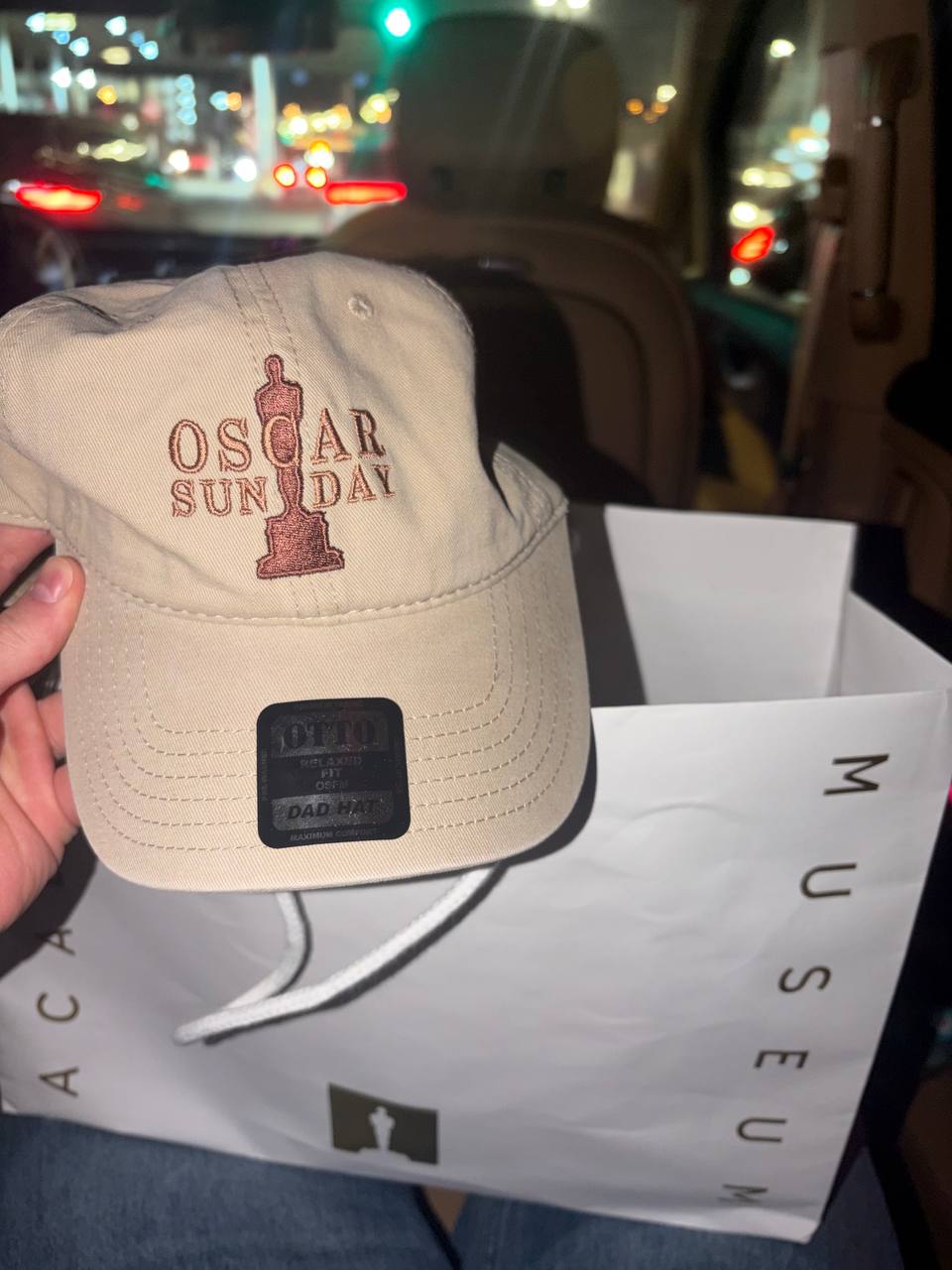 Близкий друг был в Америке и привез мне кепку из музея Оскара, прямо вместе с пакетом))