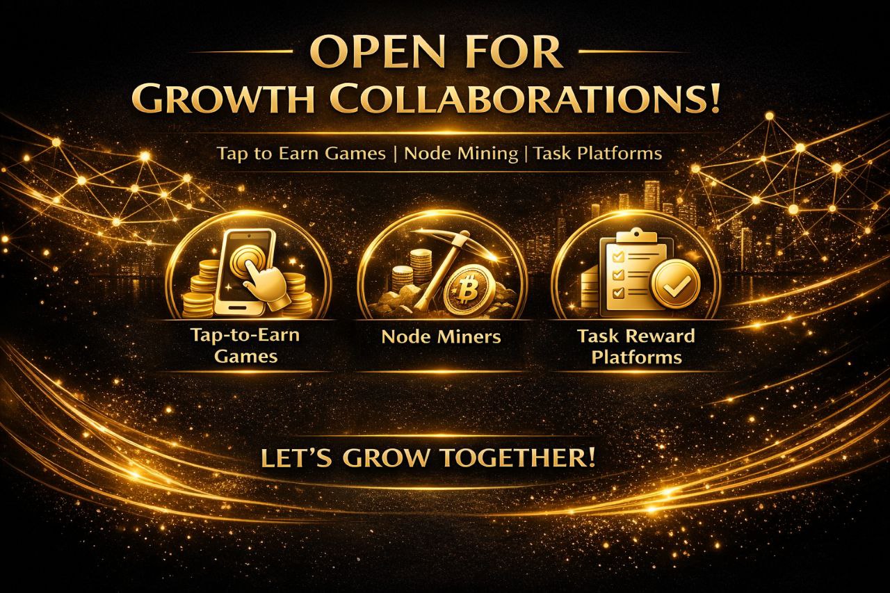 We are actively open to growth and promotion Collaborations with Tap-to-Earn games, node miners, mini-apps, and task-based reward platforms looking to scale fast with the right audience.