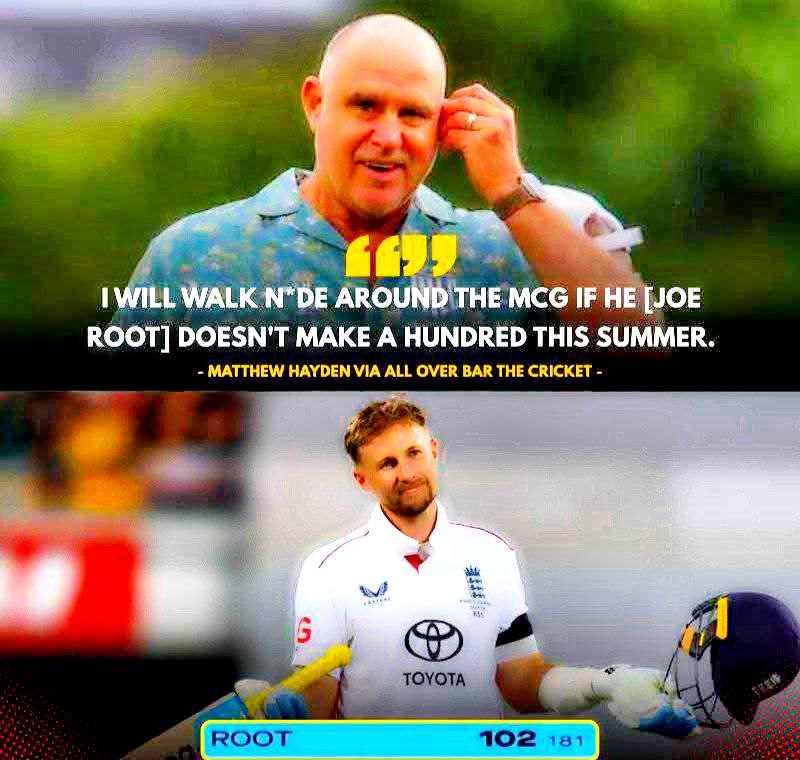 - Joe Root just scored his 40th Test ton and first in Australia, saving Hayden from the bet 😆