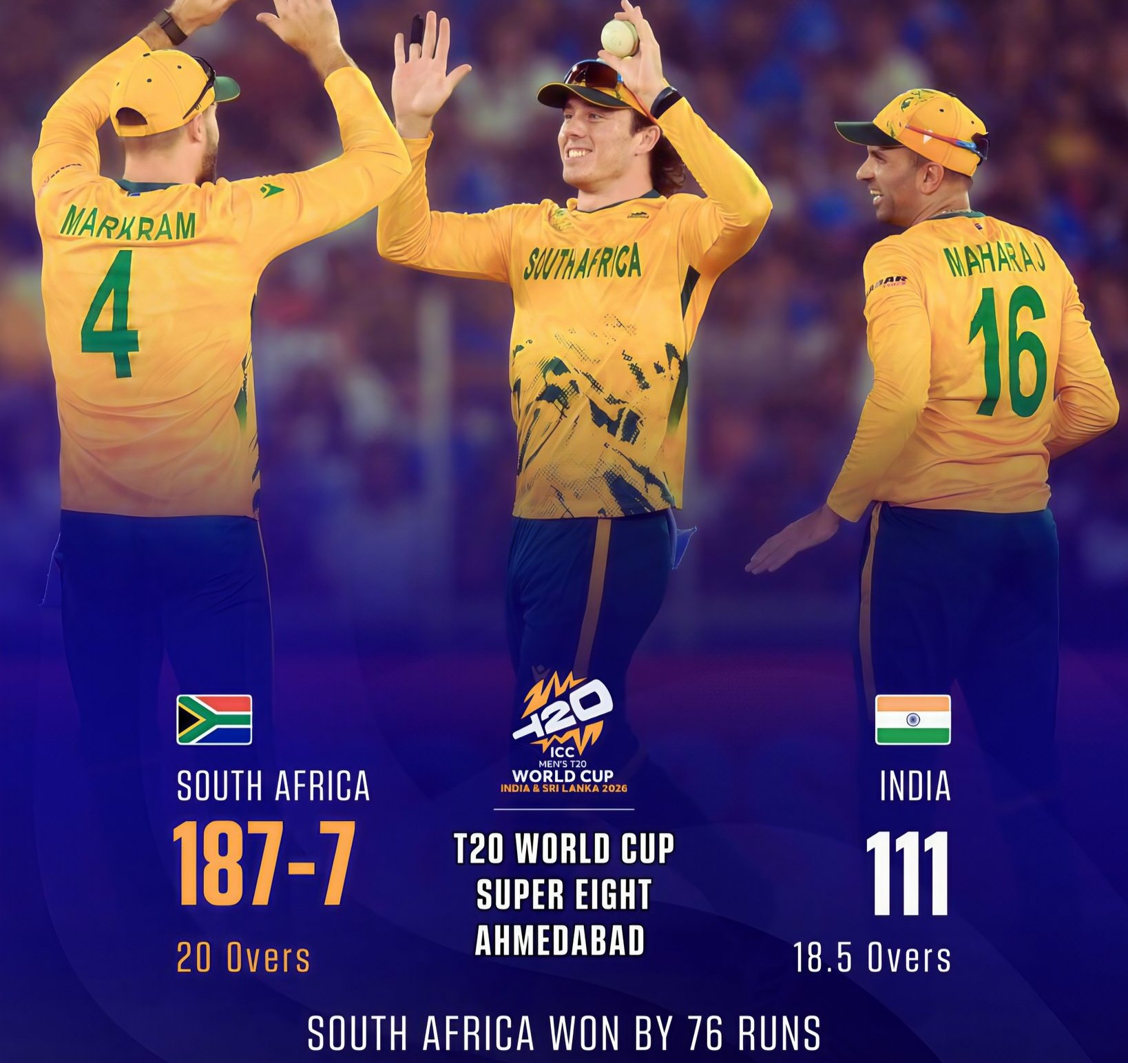 - South Africa becomes the first team in 823 days to beat India in ICC tournaments. 🇿🇦