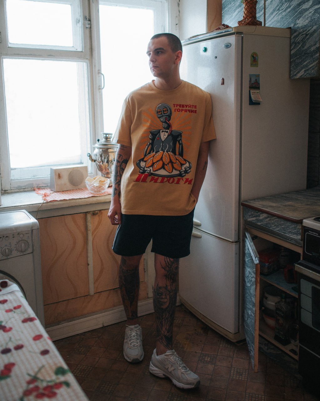 Футболка из официальной коллекции Atomic Heart. Пошита из кулирной глади пенье повышенной плотности 240 г/м2 производства фабрики Gulle. Изображение нанесено шелкографией, но некоторые буквы в тексте выполнены вышивкой. Сзади вышитый логотип.